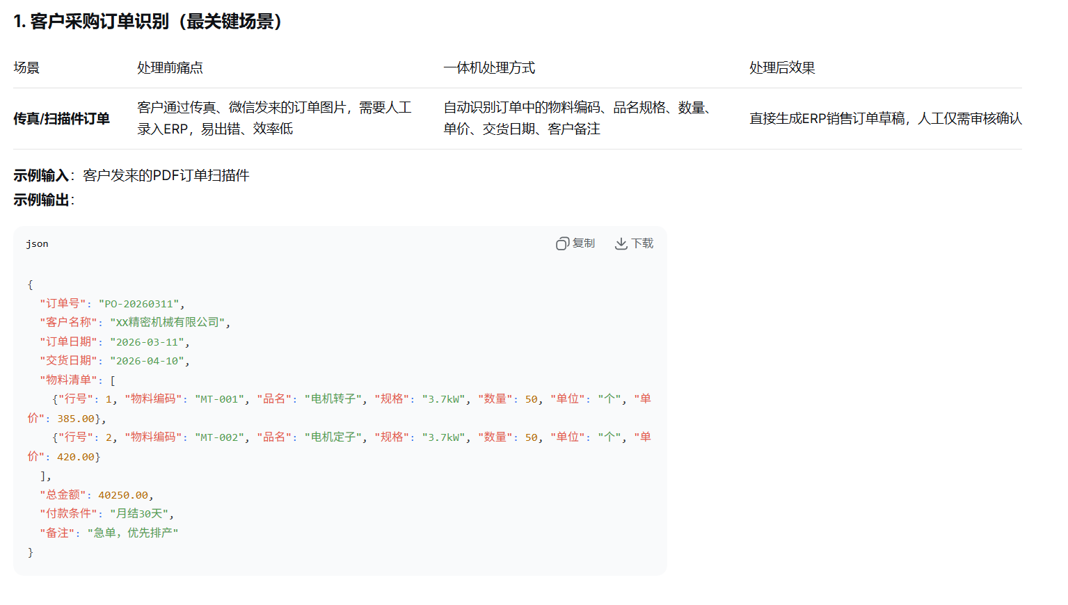 制造业:订单识别,采购单识别,质检单识别、产品序列号提取、工艺单管理
