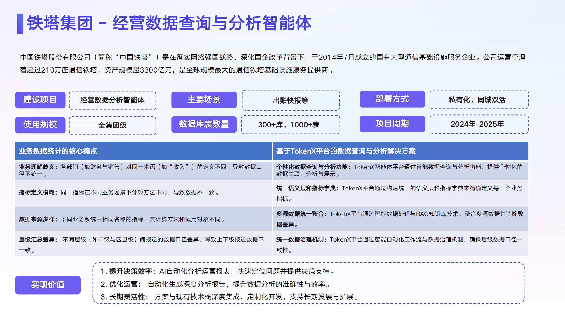 AI响应: 大模型实时理解您的意图,自动检索数据库,并在几秒钟内以图表或表格形式呈现结果。无需记忆复杂的筛选条件,真正做到“有问必答”。
