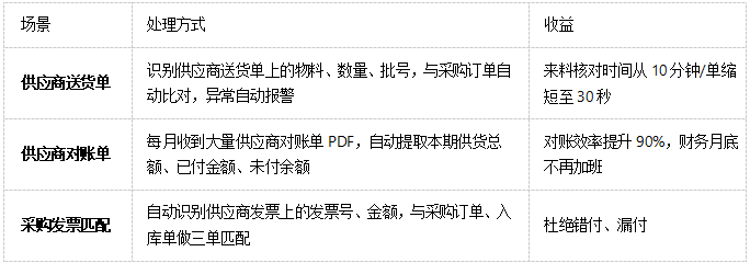 自动匹配:送货单与采购订单自动比对,差异报警